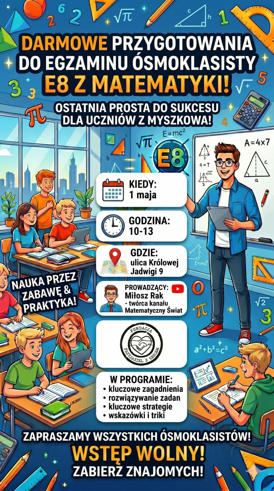 Spotkanie poprowadzi Miłosz Rak – twórca kanału YouTube Matematyczny Świat.