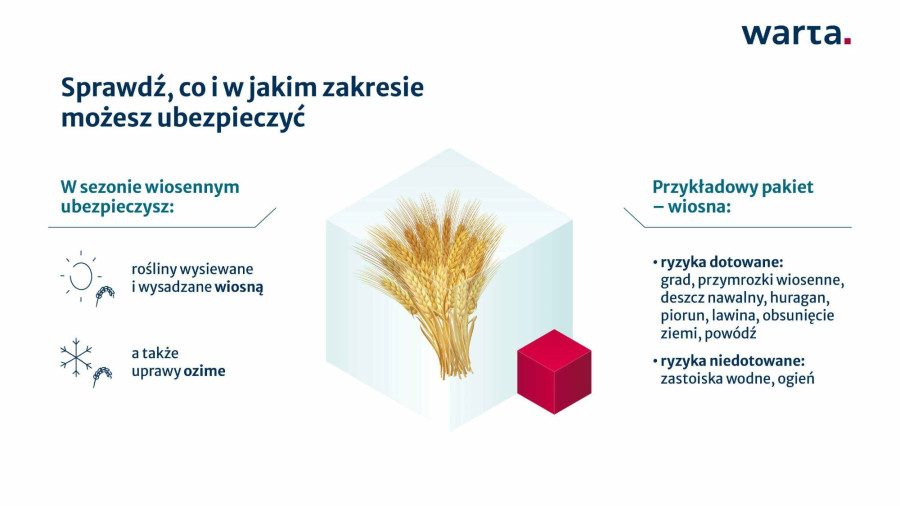 Sprzedaż ubezpieczeń w Warcie już trwa. Szczegóły można znaleźć u agentów oraz na stronie internetowej ubezpieczyciela: https://www.warta.pl/dla-firmy/ubezpieczenie-upraw/.
