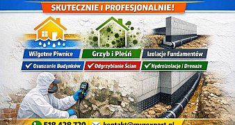Promuj ogłoszenieProfesjonalne osuszanie budynków piwnic odgrzybianie izolacje fundamentów - skuteczne rozwiązania dla Twojego domu Jeśli zmagasz się z wilgocią w piwnicy, ... czytaj więcej